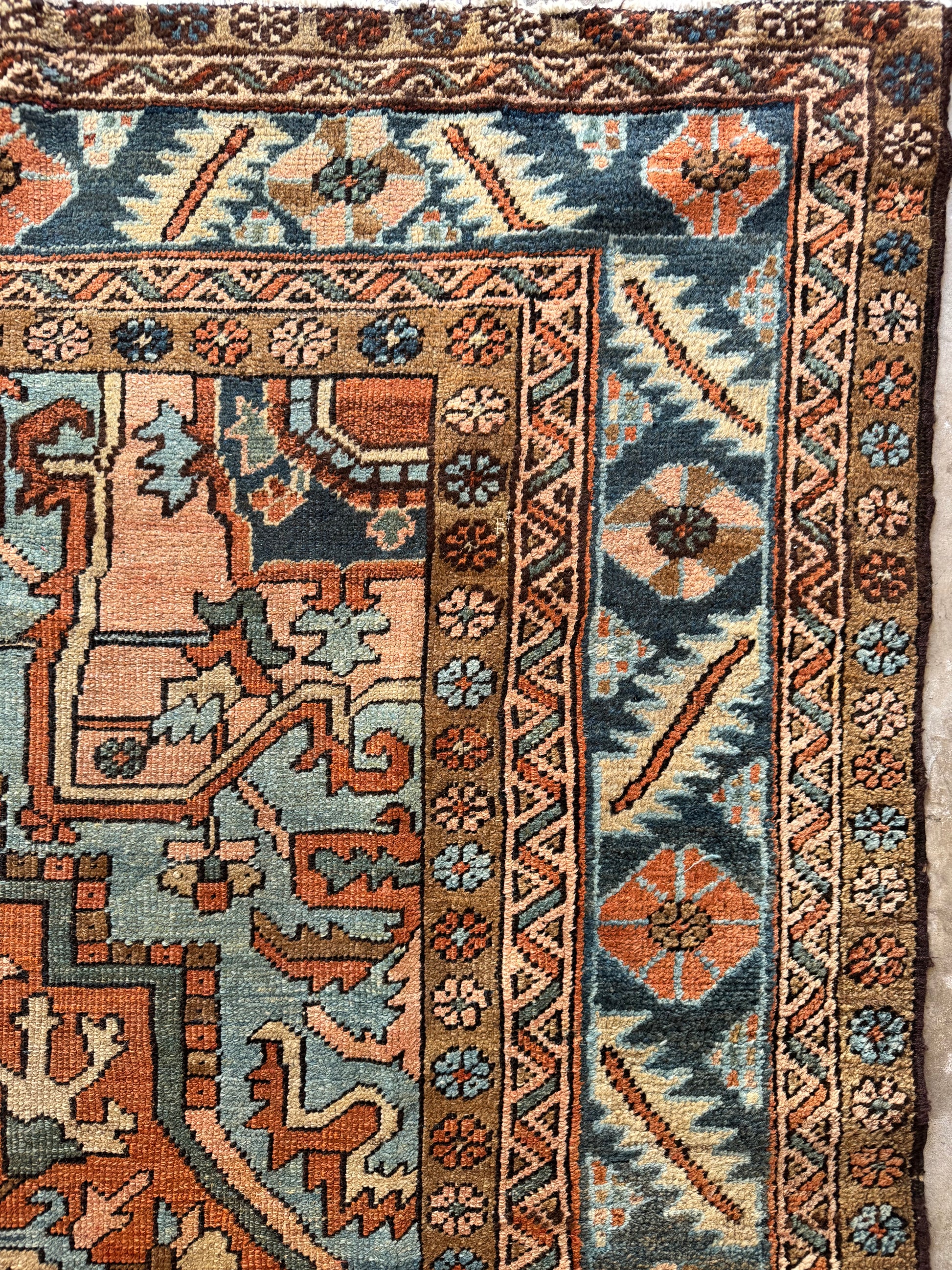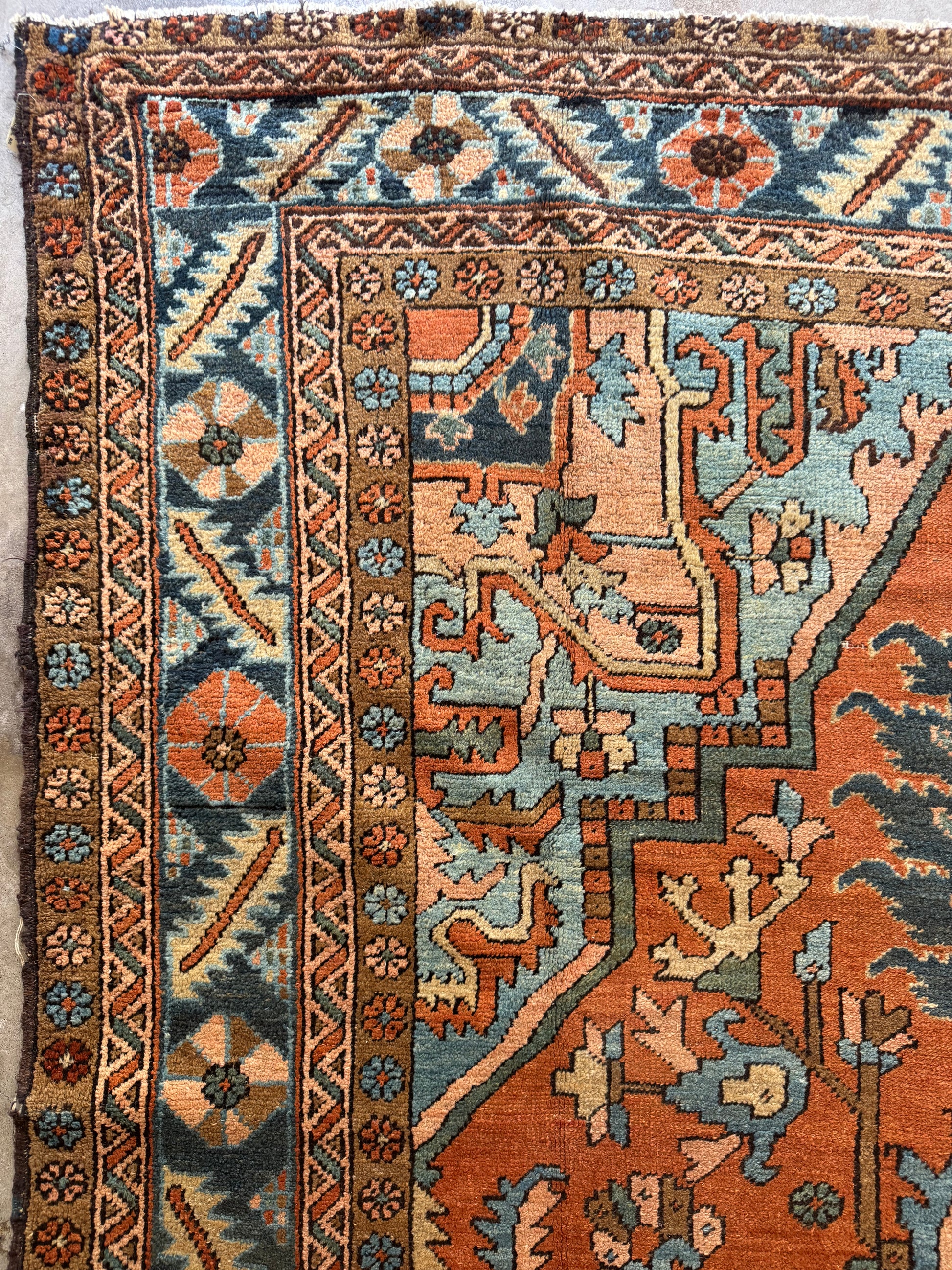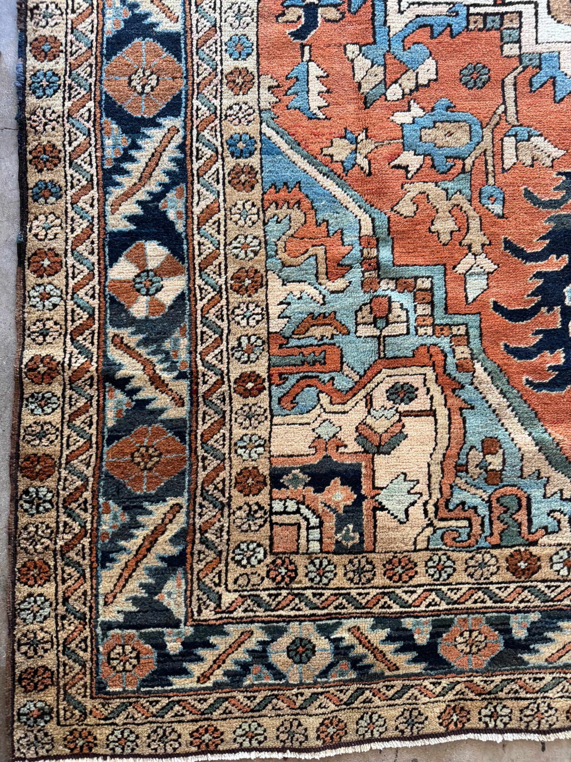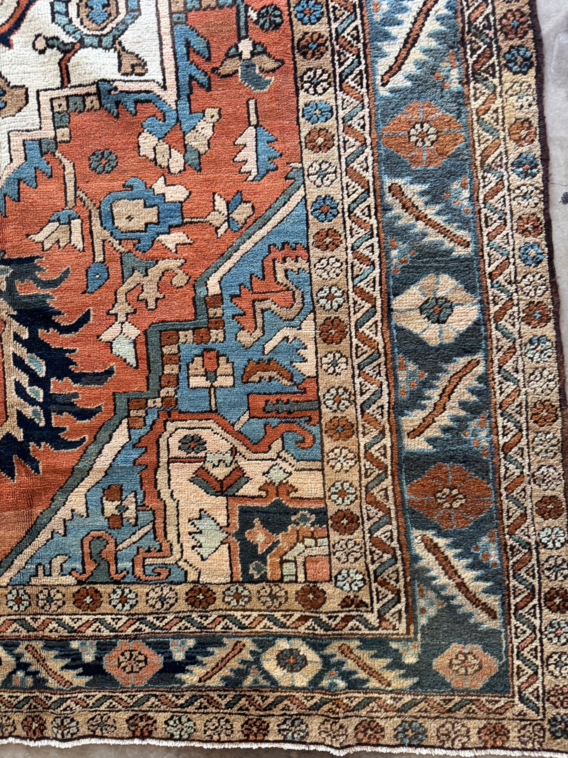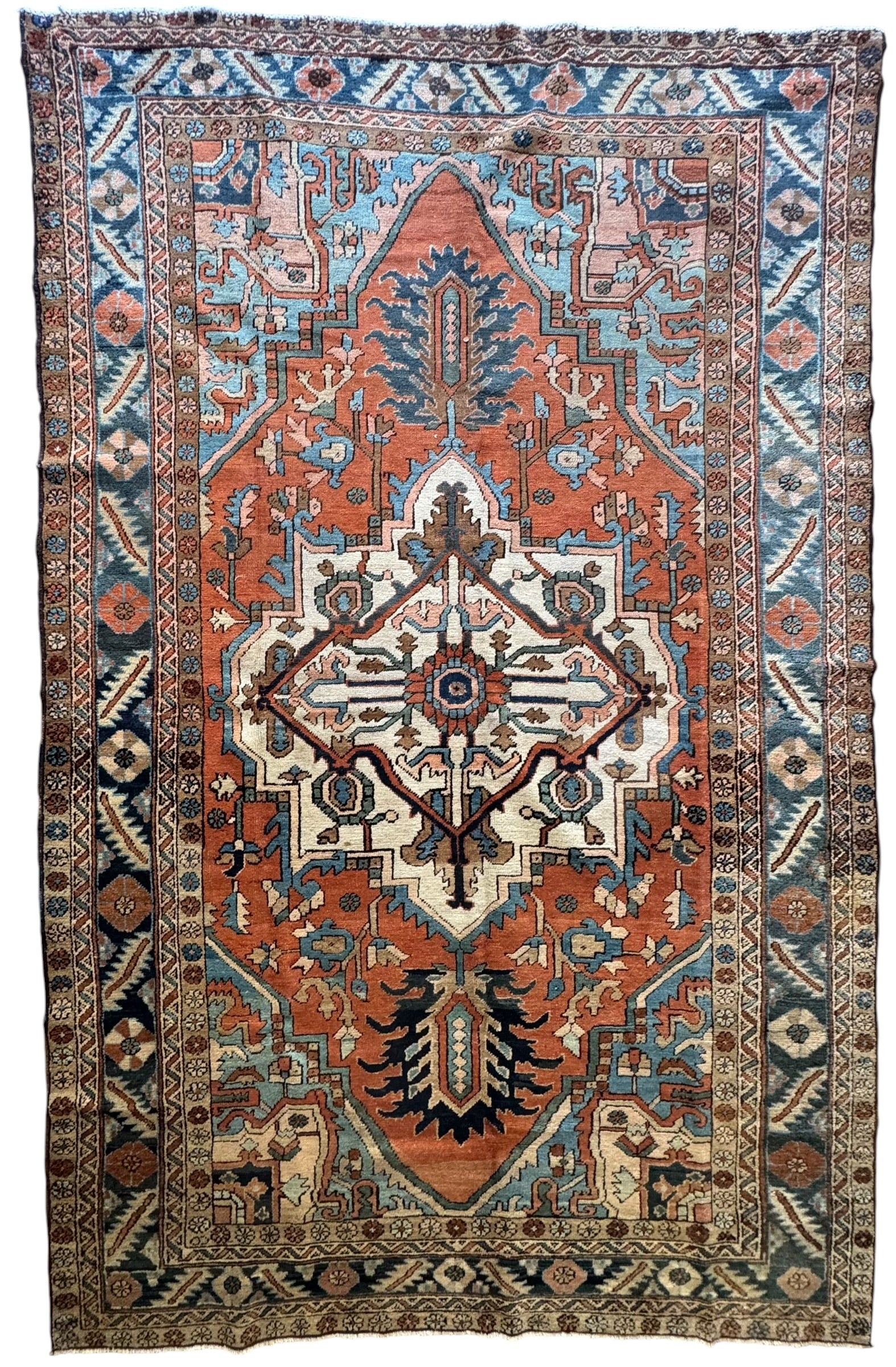 This is a stunning, one of a kind, pretty much perfect condition, hand knotted, wool, antique Serapi rug.