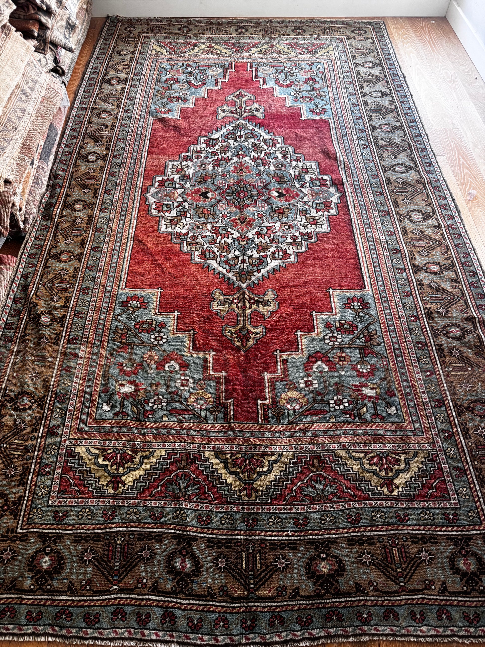 Vintage, hand knotted, wool/cotton, one of a kind, Turkish rug.